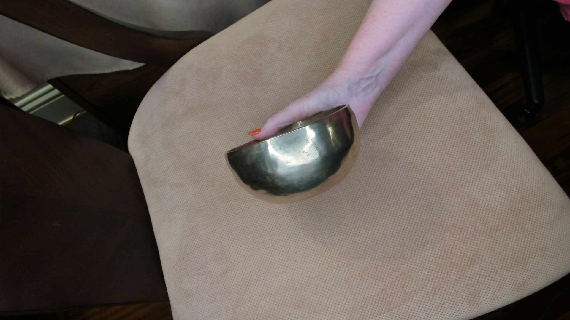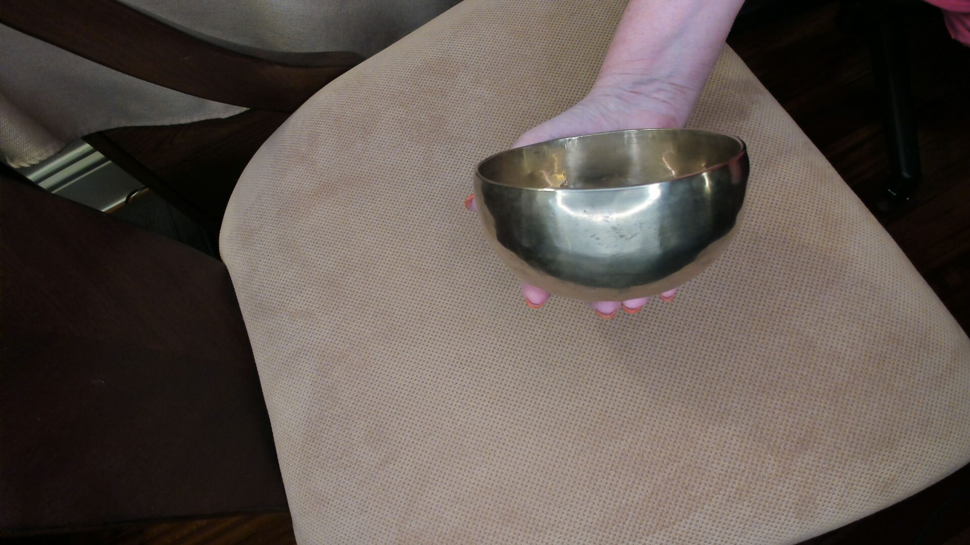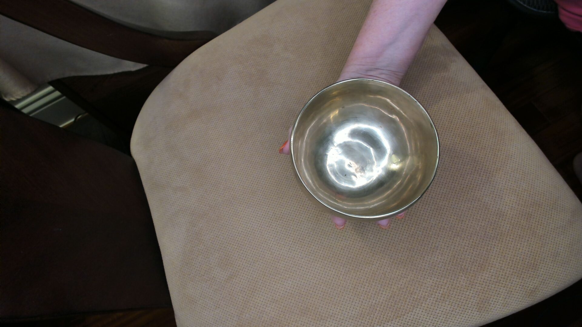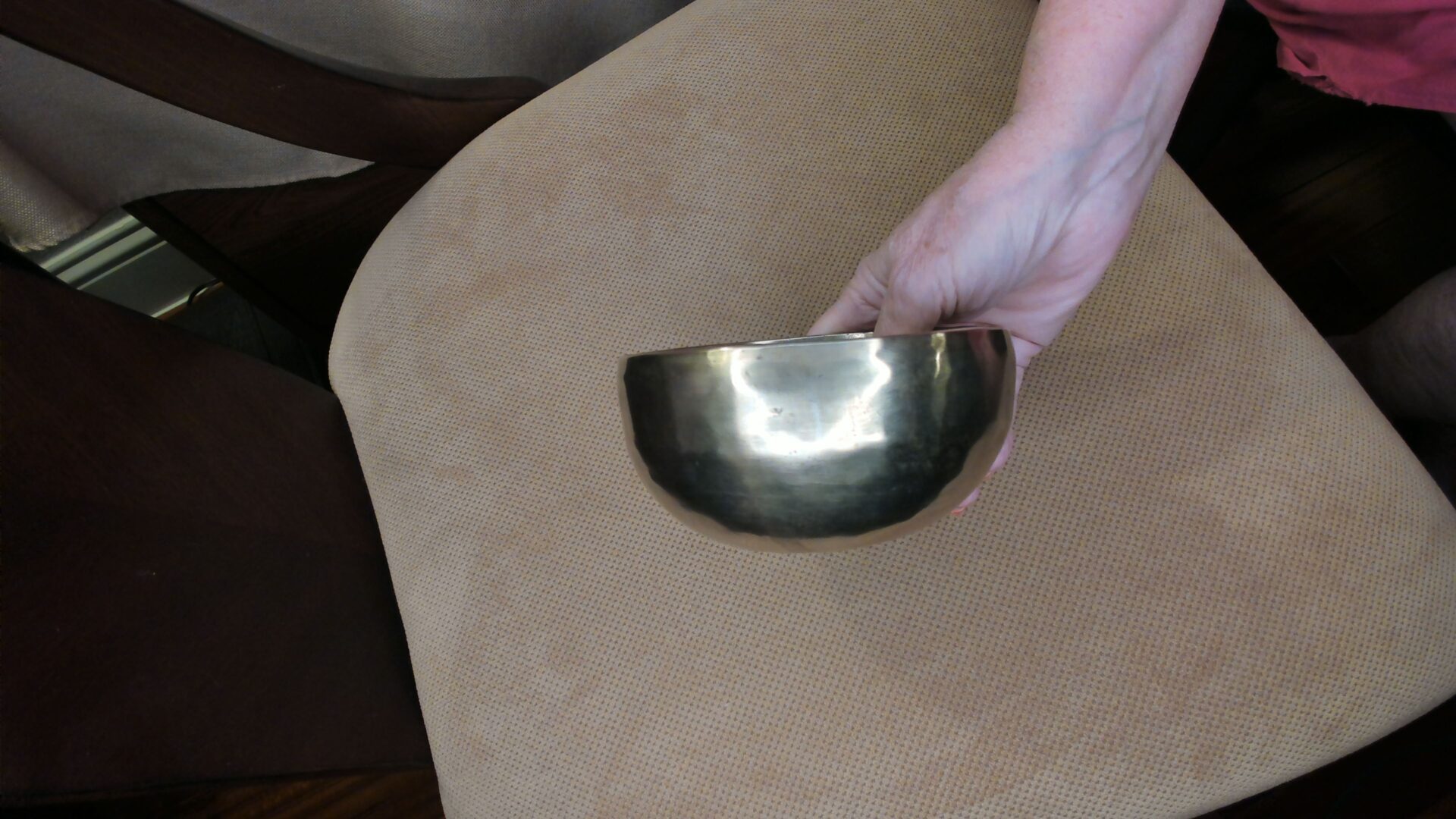 This one-of-a-kind, hand made bowl is 5 inches in diameter and perfect for using on the 3rd eye, crown chakra or as the highest bowl in a three treasures combination of bowls.   Approximately a G# and ranges into 414.5, it is a harmonic close to the hertz of the High Frequency Uranus tuning fork.  Uranus rules the Aquarian Age and is associated with the break throughs this bowl can break through for your 3rd eye or crown.