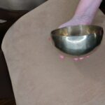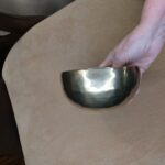 This one-of-a-kind, hand made bowl is 5 inches in diameter and perfect for using on the 3rd eye, crown chakra or as the highest bowl in a three treasures combination of bowls. Approximately a G# and ranges into 414.5, it is a harmonic close to the hertz of the High Frequency Uranus tuning fork. Uranus rules the Aquarian Age and is associated with the break throughs this bowl can break through for your 3rd eye or crown.
