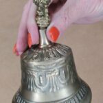 This medium size bell clears out negative energy, shifts energy and clears chakras with 962.3 hertz, approximately a B (5) note.