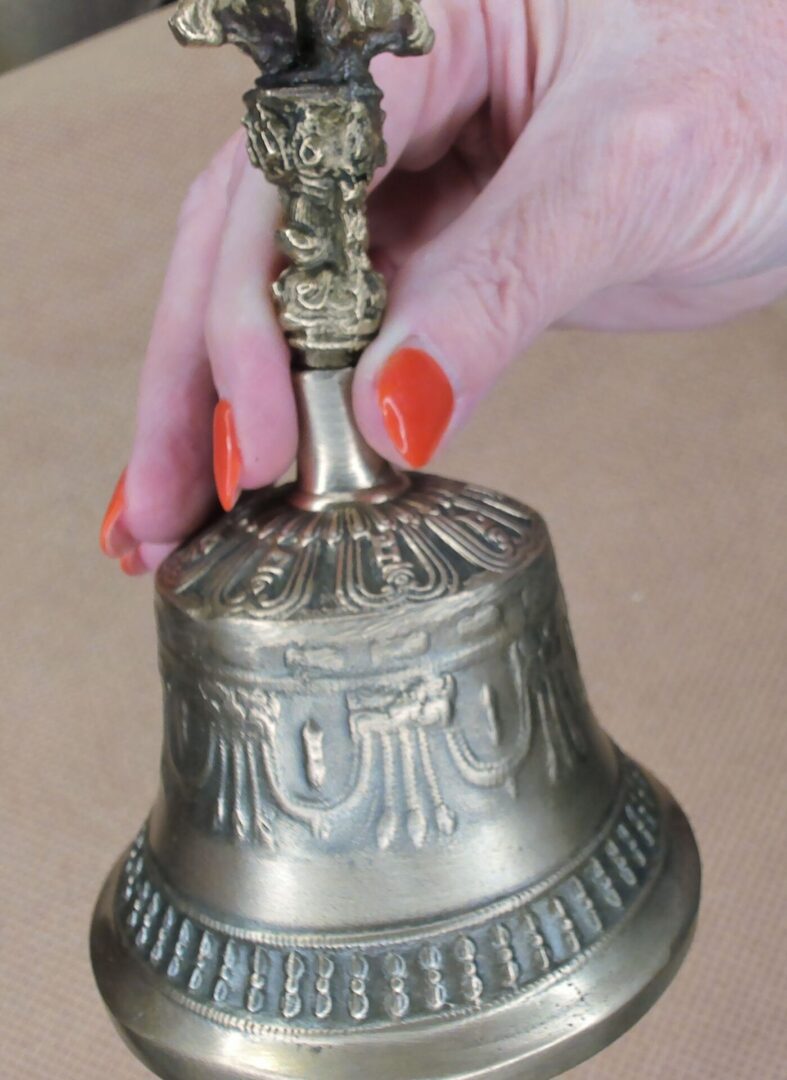 This medium size bell clears out negative energy, shifts energy and clears chakras with 962.3 hertz, approximately a B (5) note.