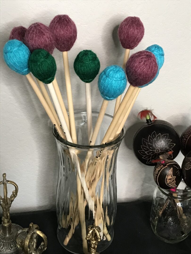 The larger wine mallet is perfect for activating low octave hand planetary hand chimes or larger Tibetan singing bowls (both sold separately).